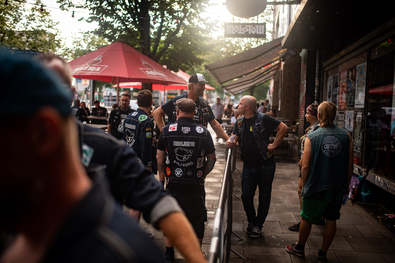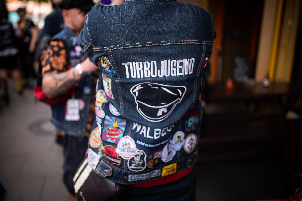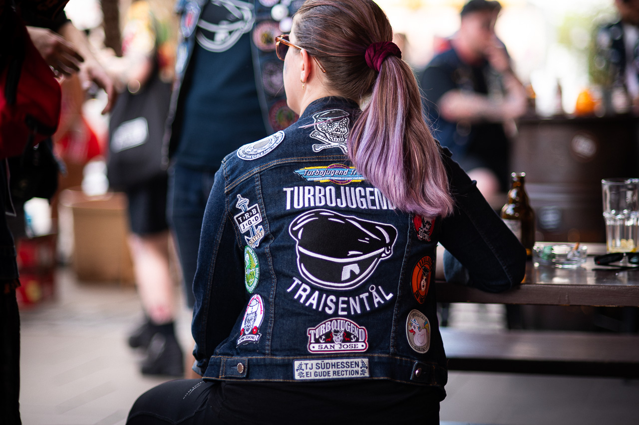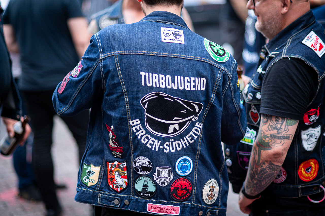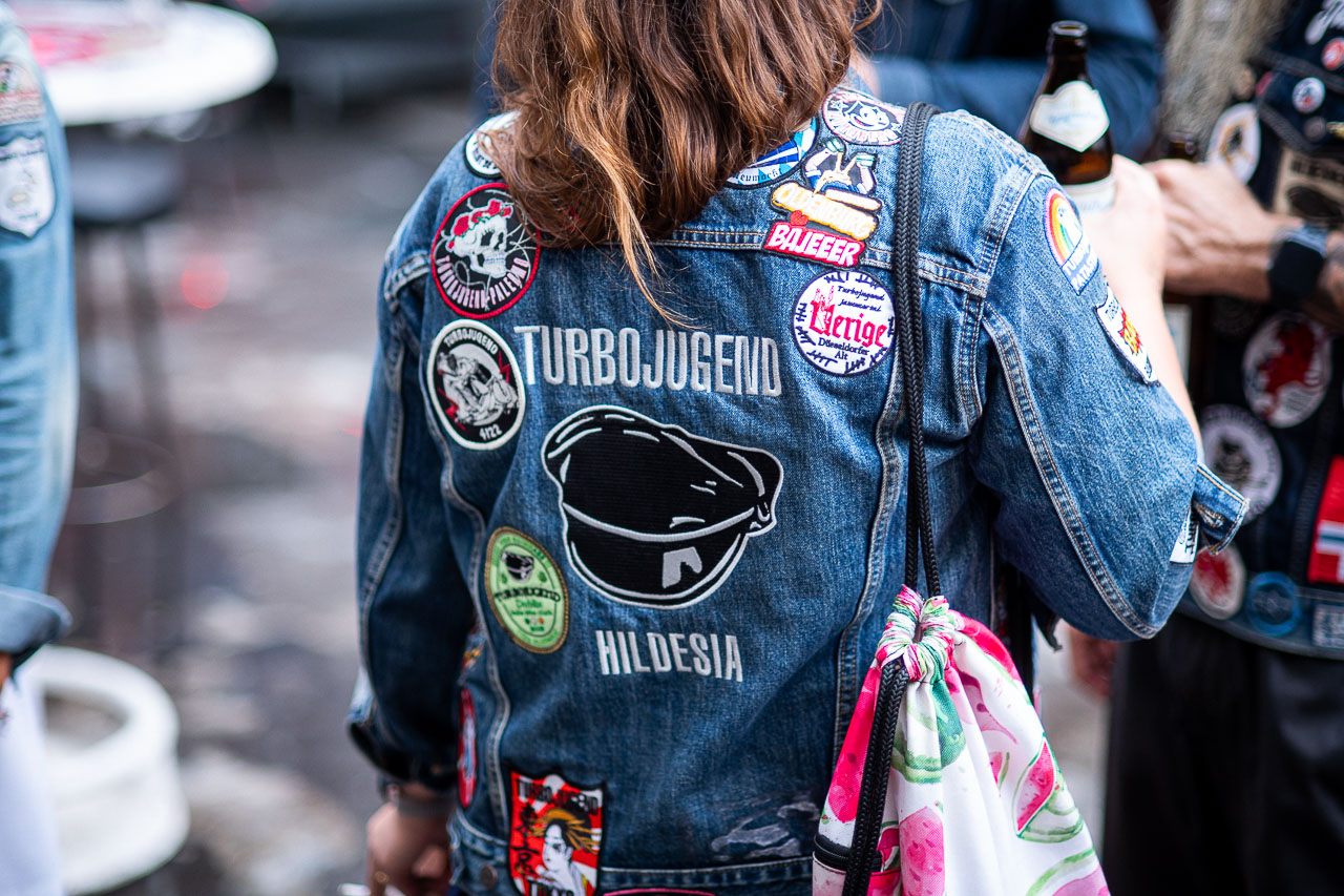 Their denim jackets are called „Kutte“. A proper Kutte is usually decorated with an insane amount of batches from Bands and political statements. The people who wear these Kutten (plural for Kutte) often are found to be usually drunk, sometimes a bit misbehaving but always antifascist. Let’s face it: they are a very colourful and diverse bunch of people who enjoy to party hard.