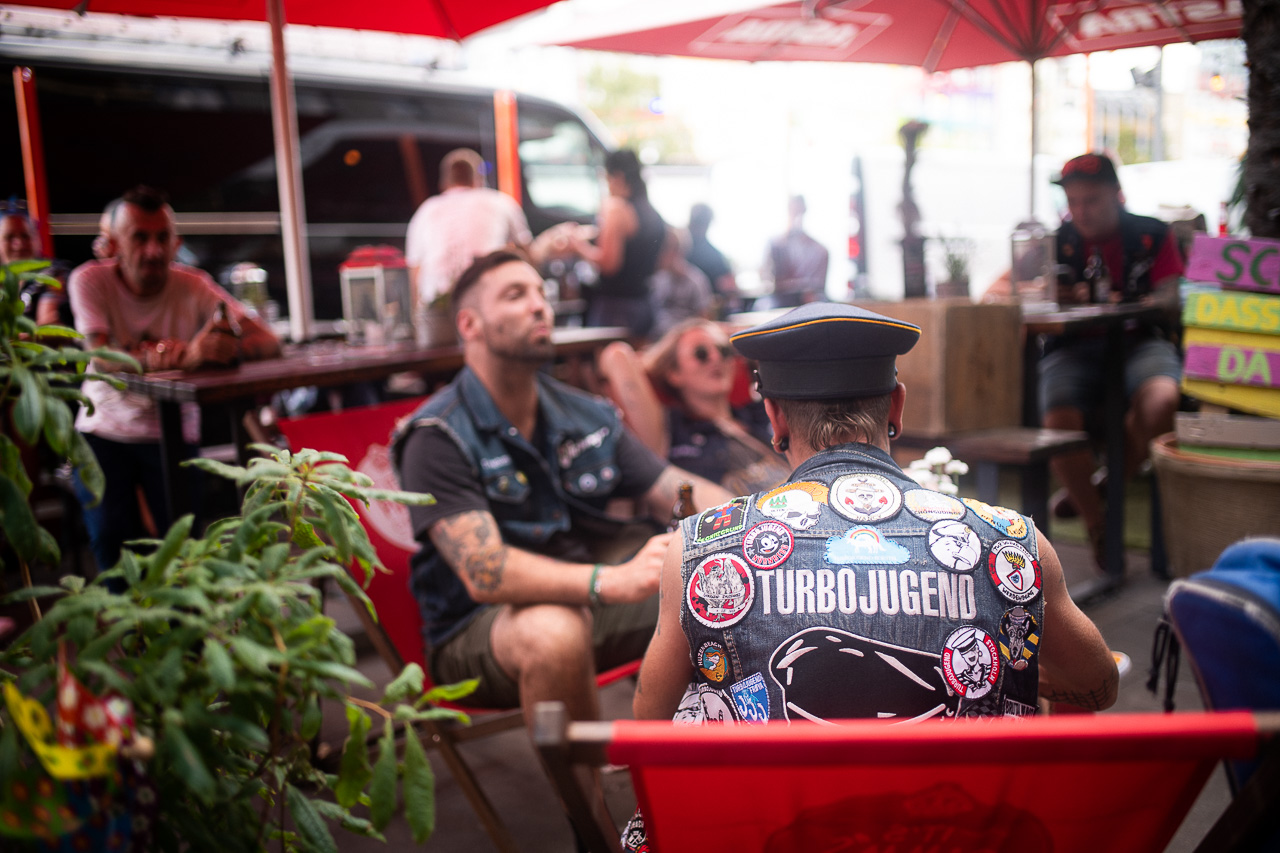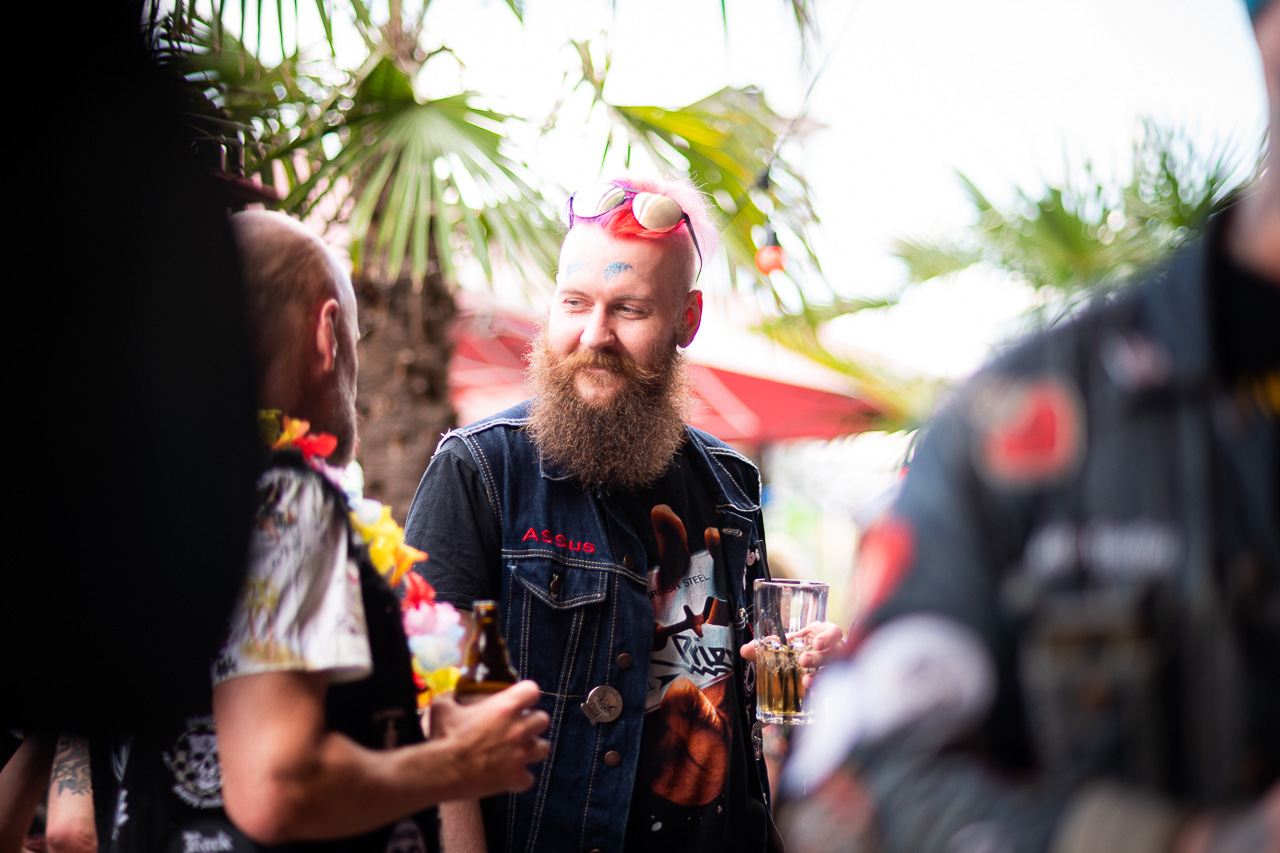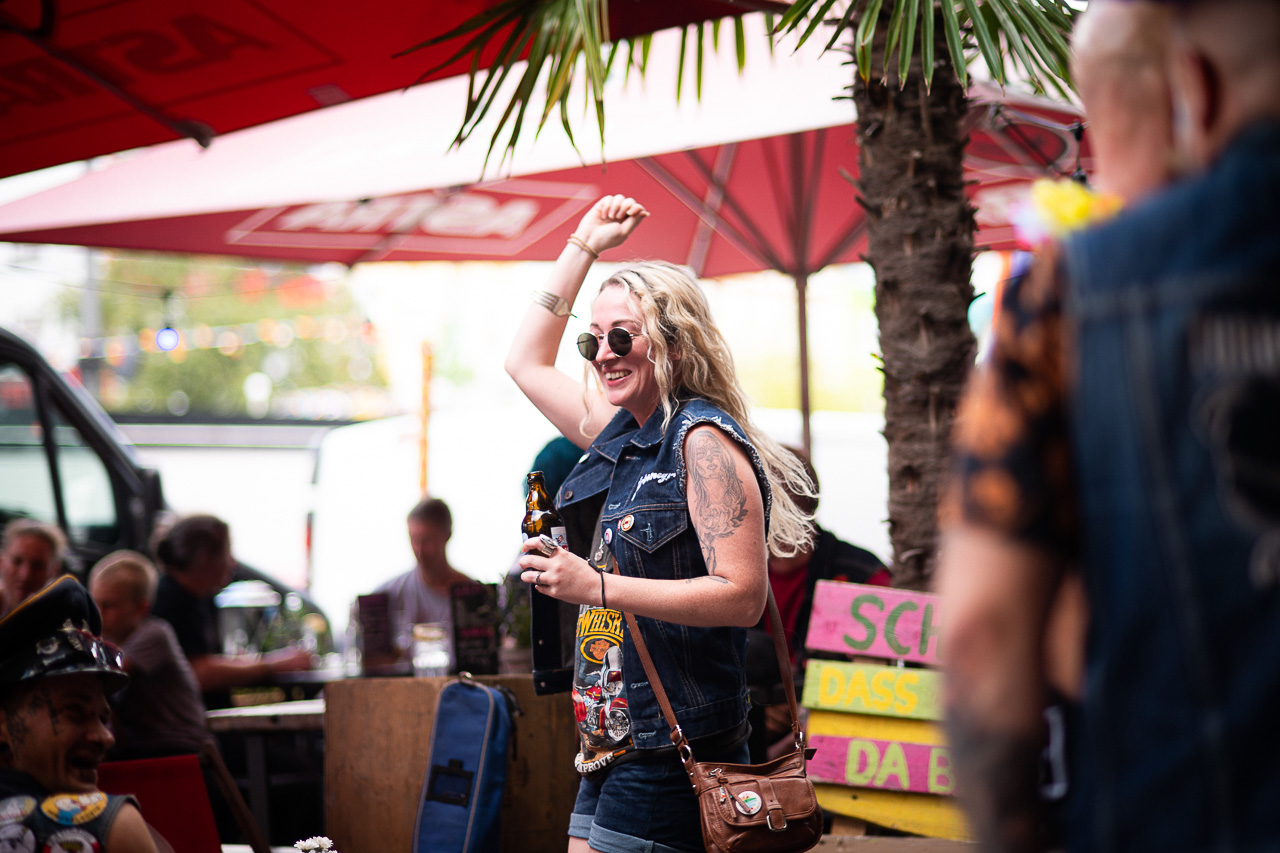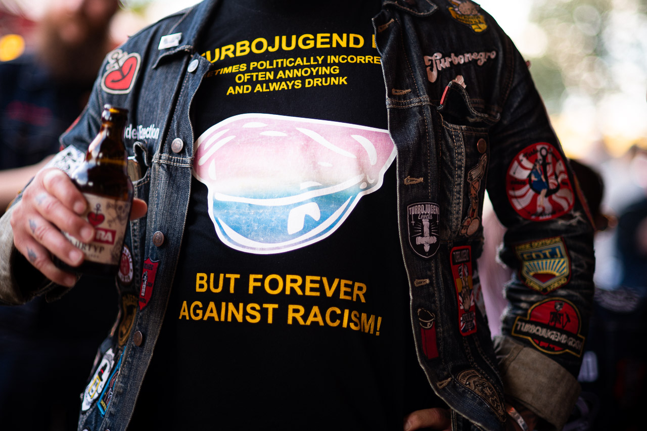 Their denim jackets are called „Kutte“. A proper Kutte is usually decorated with an insane amount of batches from Bands and political statements. The people who wear these Kutten (plural for Kutte) often are found to be usually drunk, sometimes a bit misbehaving but always antifascist. Let’s face it: they are a very colourful and diverse bunch of people who enjoy to party hard.