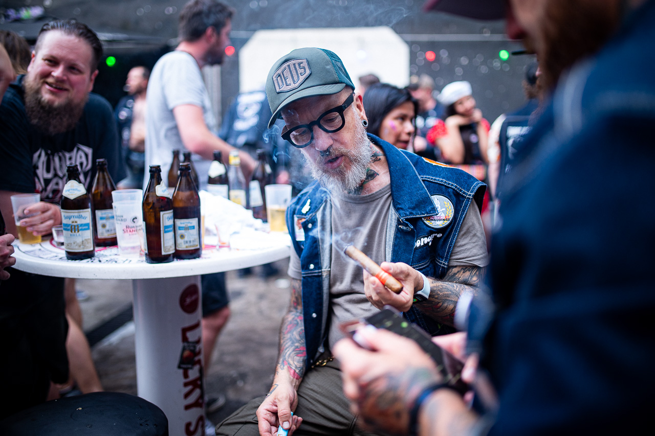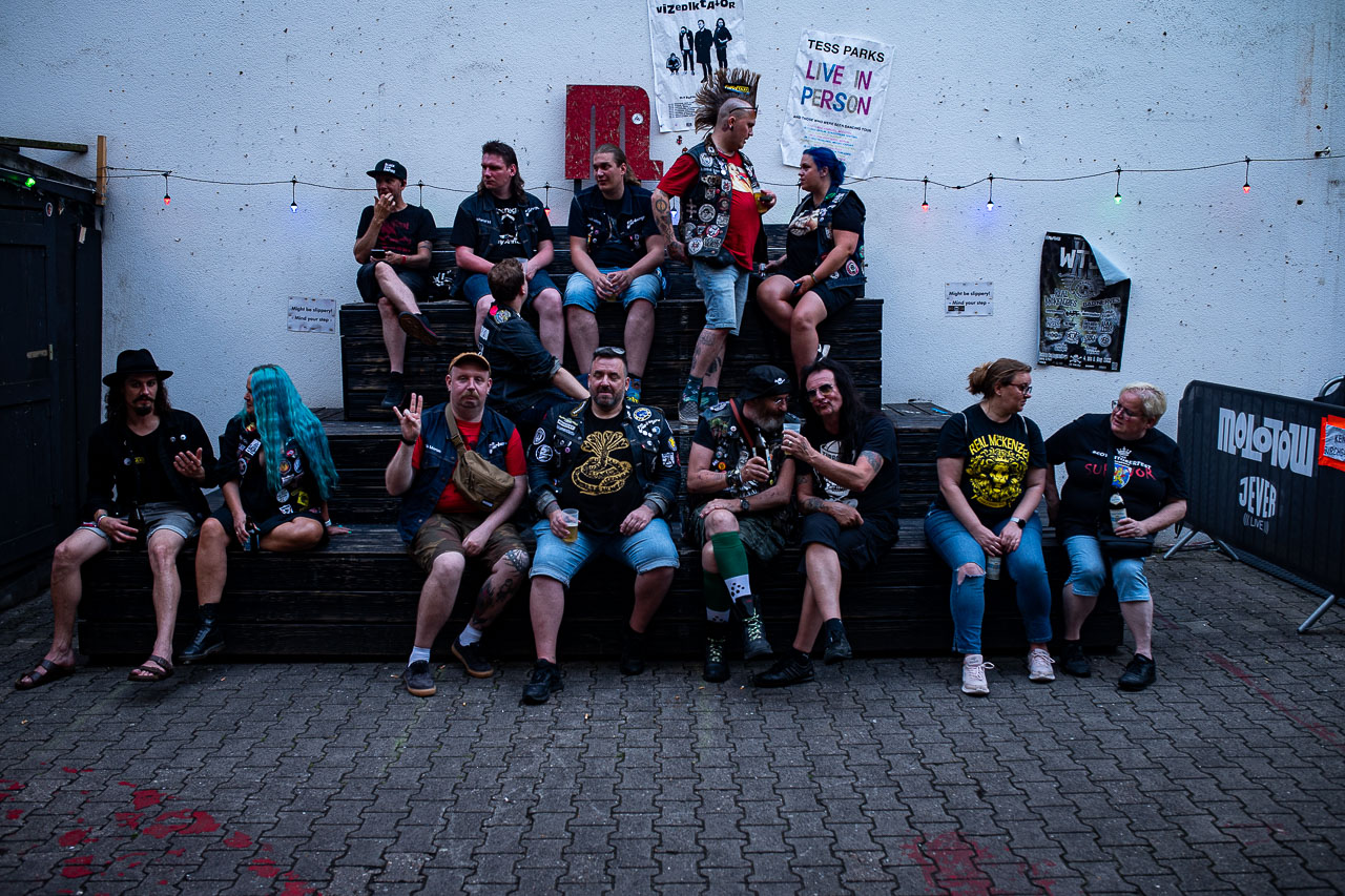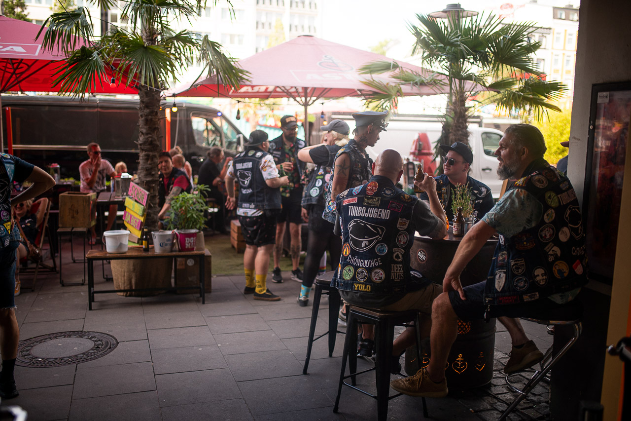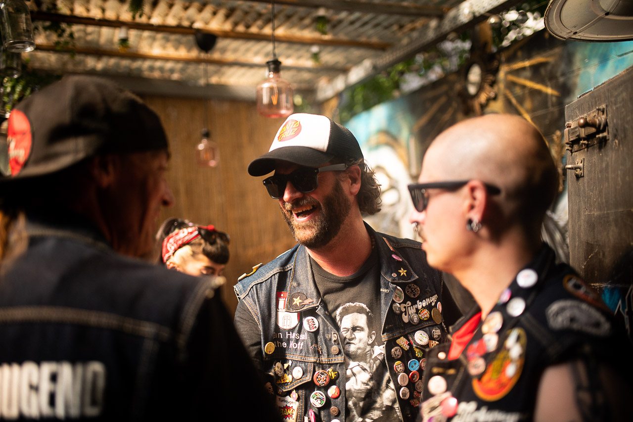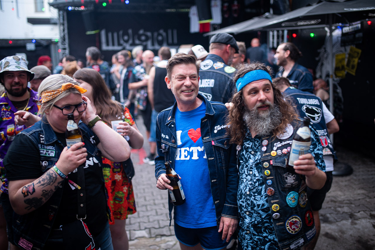 Their denim jackets are called „Kutte“. A proper Kutte is usually decorated with an insane amount of batches from Bands and political statements. The people who wear these Kutten (plural for Kutte) often are found to be usually drunk, sometimes a bit misbehaving but always antifascist. Let’s face it: they are a very colourful and diverse bunch of people who enjoy to party hard.