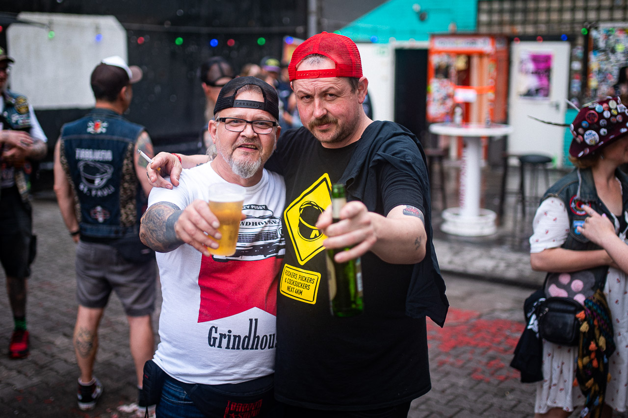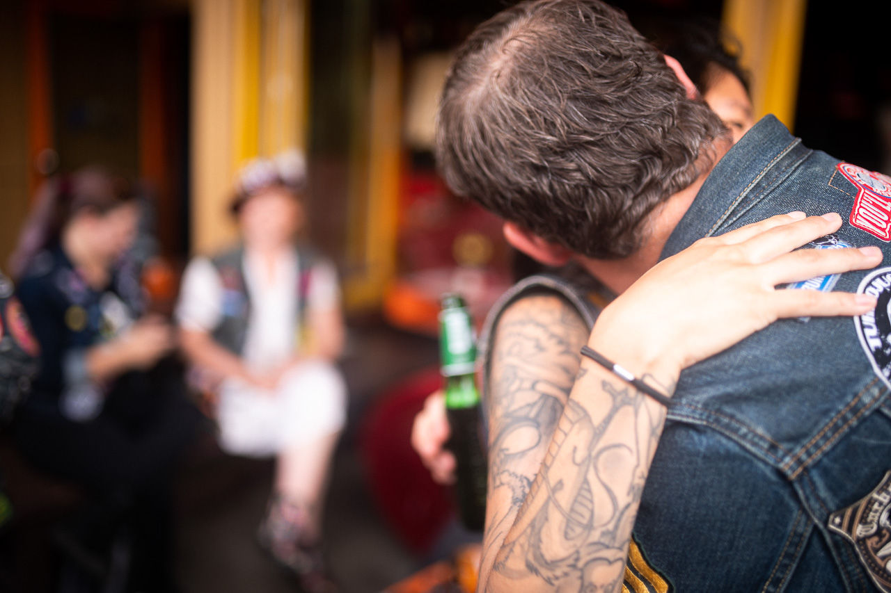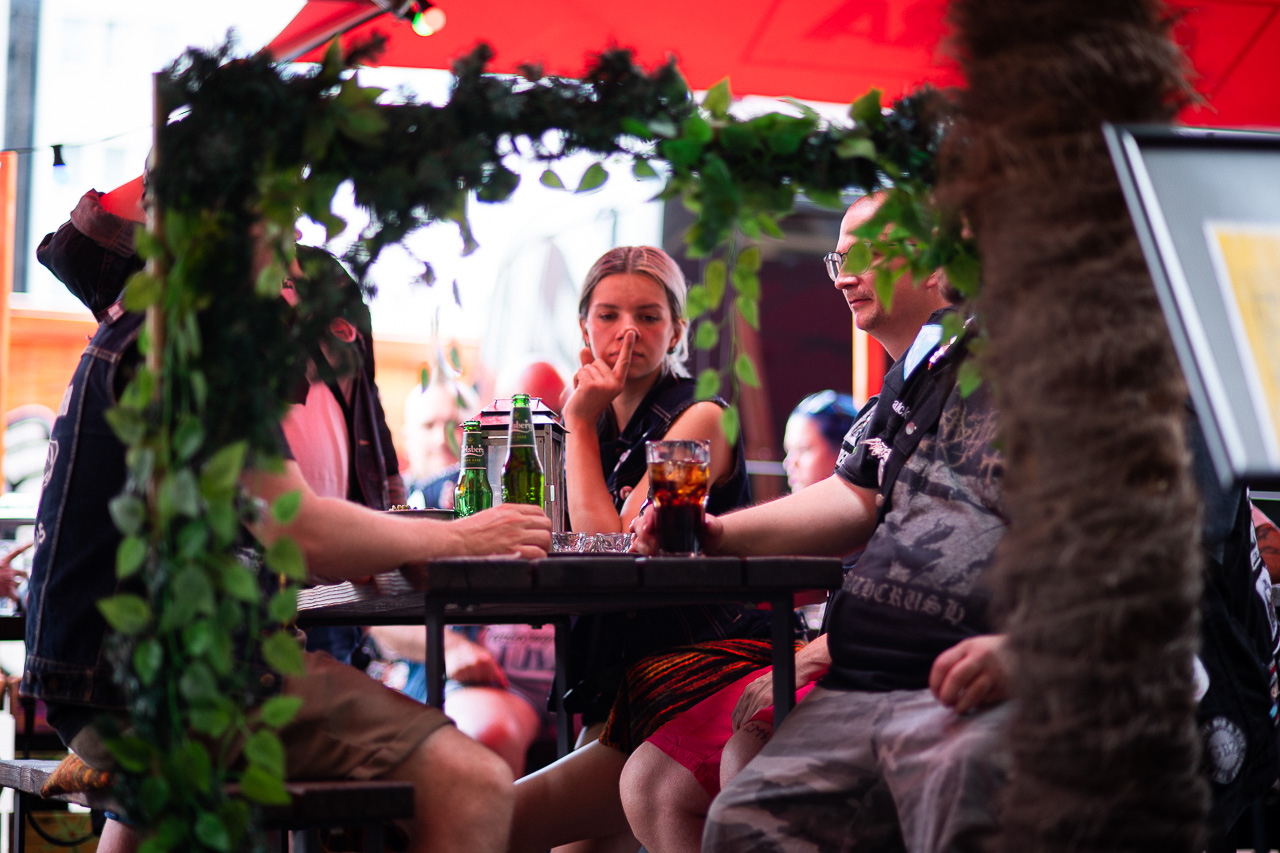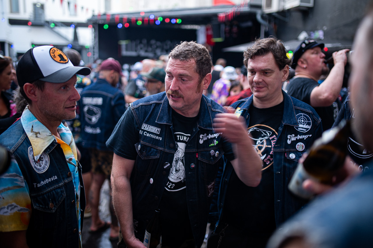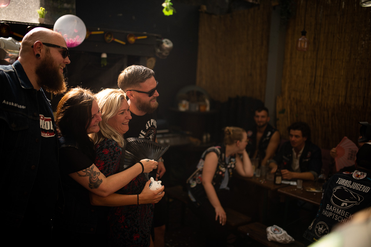 Their denim jackets are called „Kutte“. A proper Kutte is usually decorated with an insane amount of batches from Bands and political statements. The people who wear these Kutten (plural for Kutte) often are found to be usually drunk, sometimes a bit misbehaving but always antifascist. Let’s face it: they are a very colourful and diverse bunch of people who enjoy to party hard.
