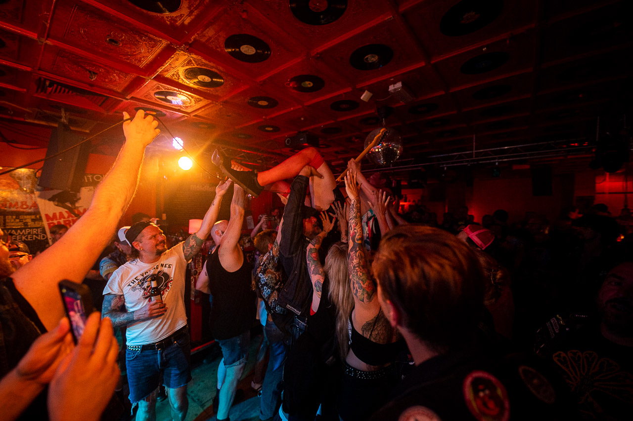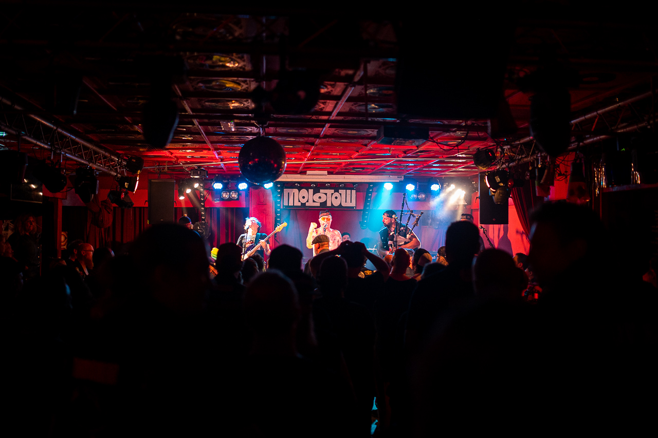 And since our dear Arne is one of these colourful people (his fighting name is Asskalator) and happens to do booking, he took it onto himself to get a proper lineup together and planed the whole shenanigans with the Turbojugend St. Pauli. That was quite a ride because you know the pandemic isn’t over. Even though several countries seem to ignore that. Originally planned to take place at the way bigger venue, the Grünspan, it was decided to shrink the size of the event a bit. So our dear friends from the Molotow welcomed the crazy bunch of sailor*ettes.