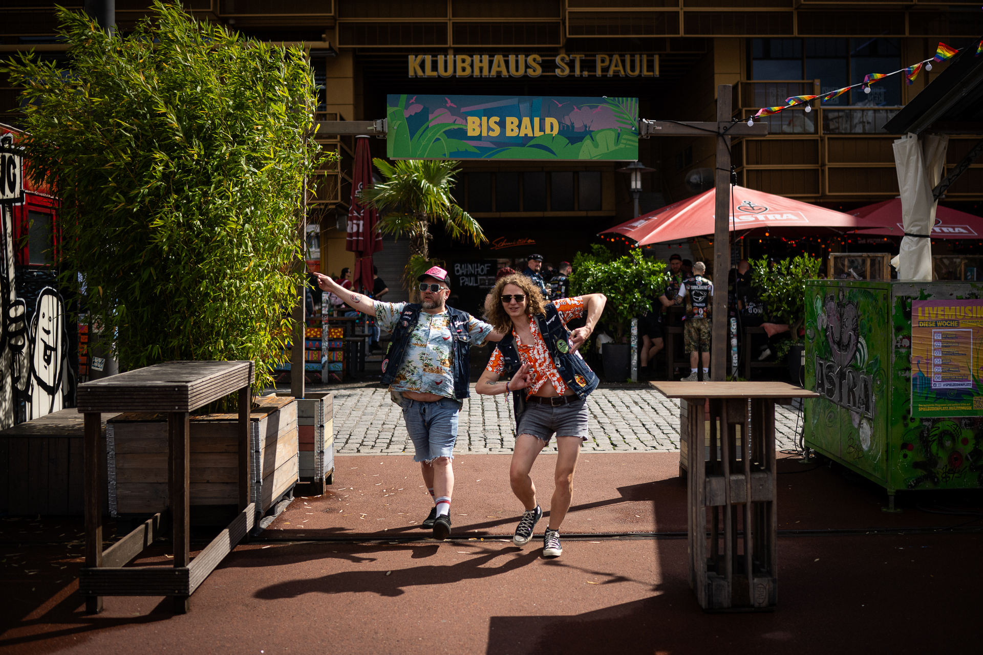 Starting off slowly by meeting friends, having drinks and enjoying the sunshine on St. Pauli’s Spielbudenplatz for Tiki Thursday. So many Sailorettes and Sailors turned up! It was a joy to see the colorful crowd in denim.